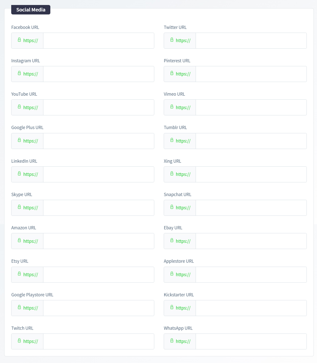 <figure><img src="https://content.gitbook.com/content/0nEFbZVS3YTby86Jhb9H/blobs/guSvhft6CYwRLXpgaDV3/docs-socials.jpg" alt=""><figcaption><p>Social Media - Theme Settings</p></figcaption></figure>