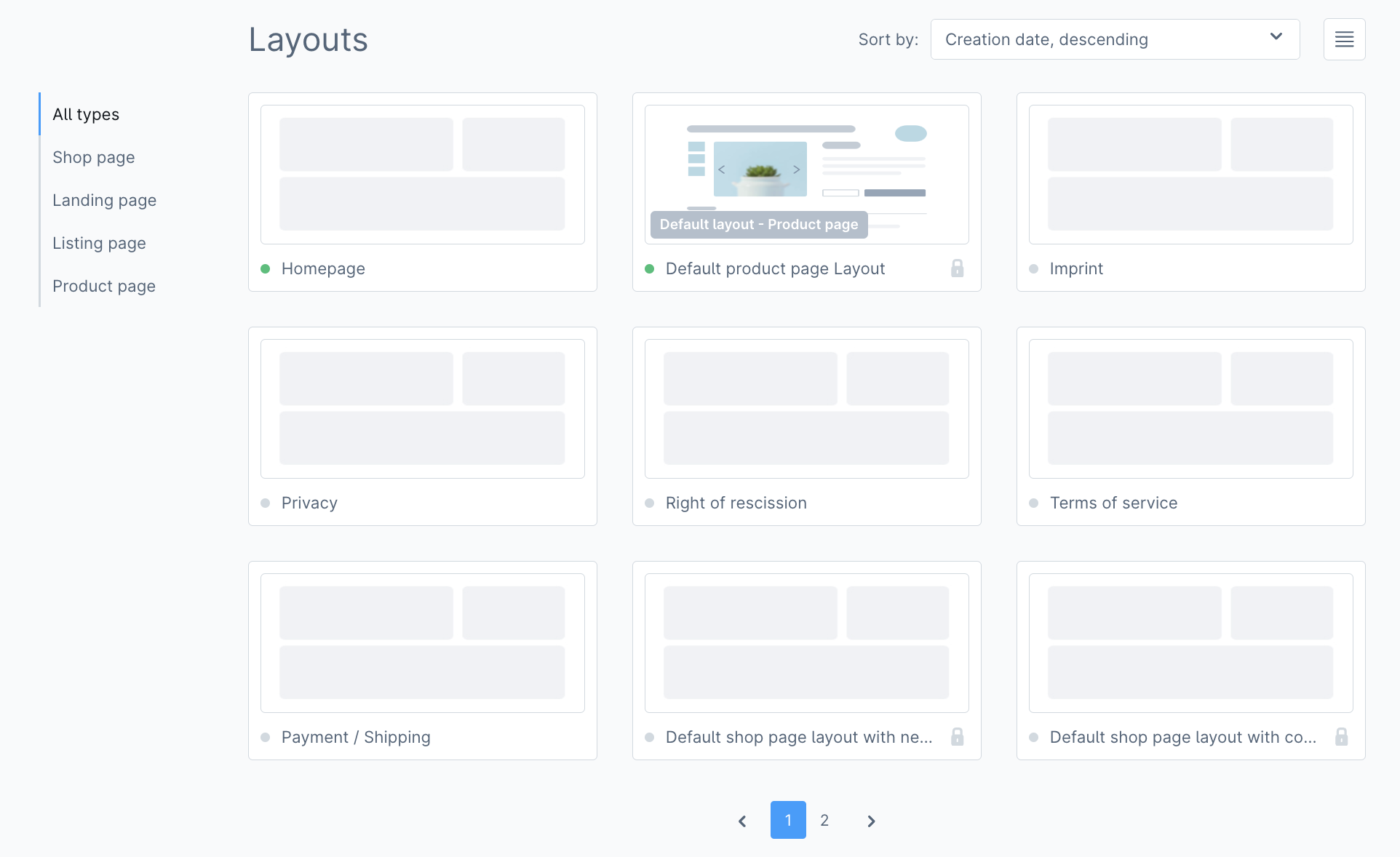 Here you can see an overview of the existing Shopping Experiences. Shopware 6 creates some layouts for you as standard, such as the legal texts. We will come to this in the next part.